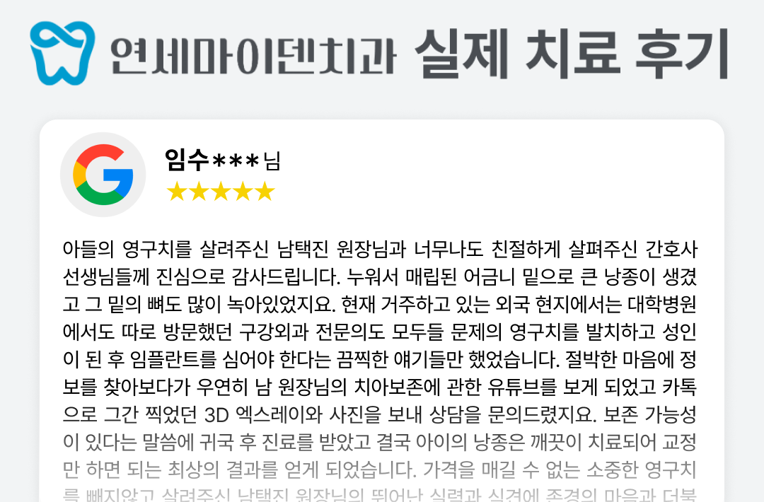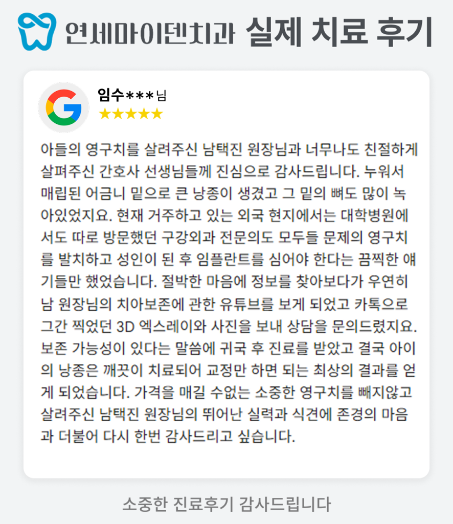 우연히 남 원장님의 치아보존에 관한 유튜브를 보게 되었고