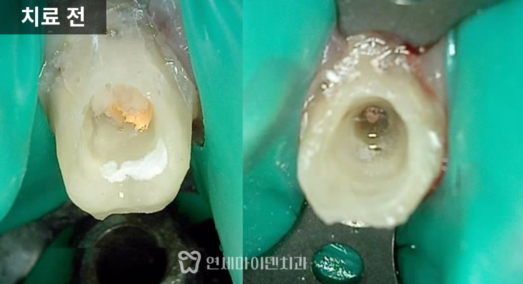 신경이 이미 괴사된 상태로 판단했습니다.
