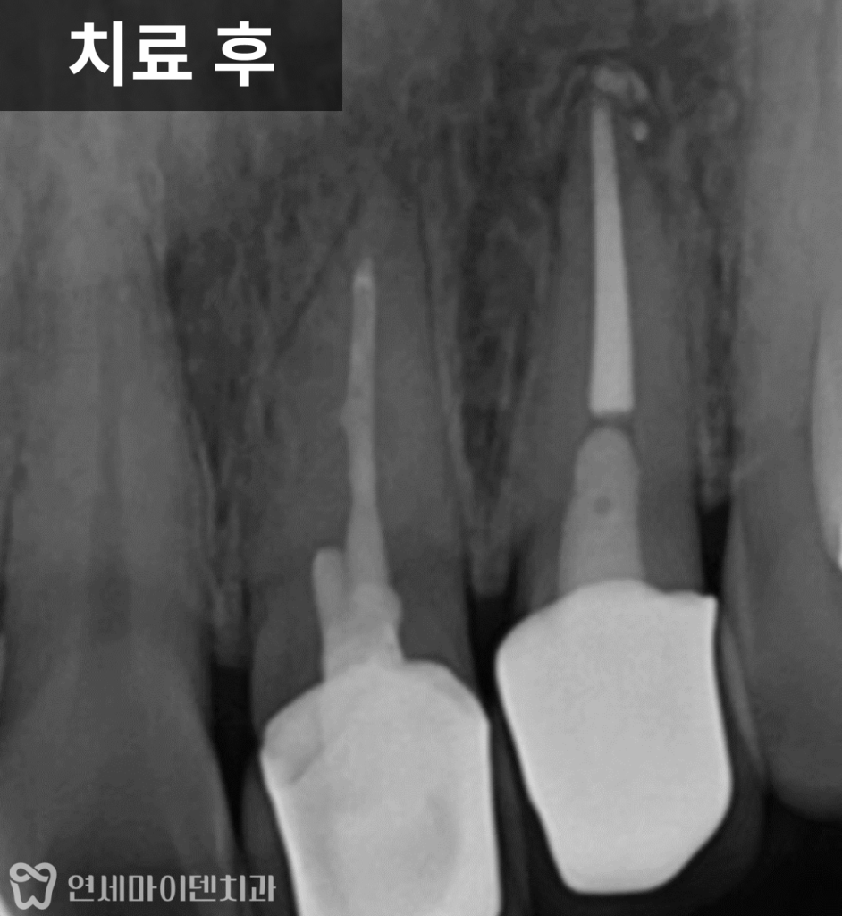 10년 전 신경치료를 받은 앞니