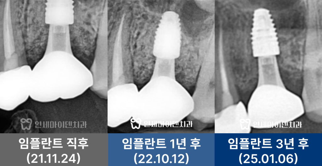 주변 잇몸과 뼈의 안정성이 매우 양호한 상태로 유지되고 있습니다.