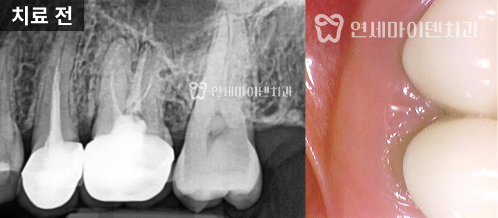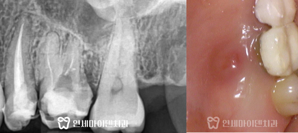 구개측 뿌리(perforation)가 뚫린 상태였습니다.