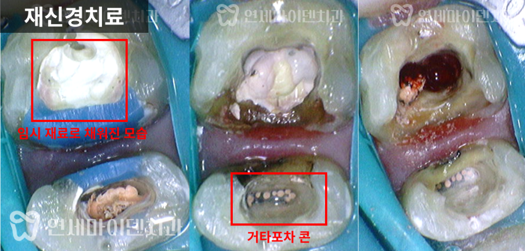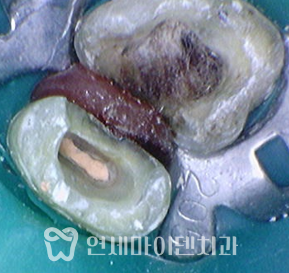 IRM, ZOE 등 임시 충전재가 채워져 있었습니다.