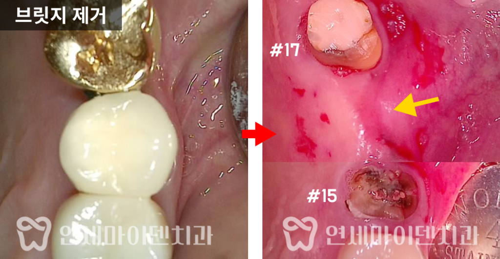 브릿지를 제거한 뒤 발치 즉시 임플란트를 진행하기로 했습니다.