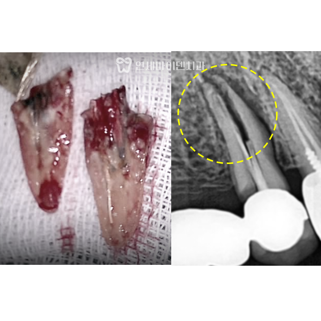 수직으로 금이 간 ‘수직치근파절‘을 확인했습니다.