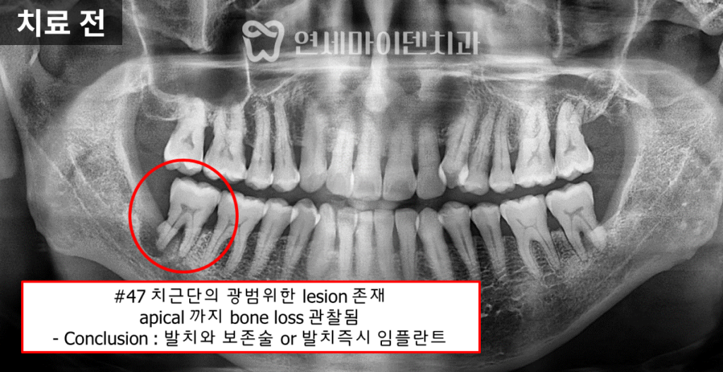 해당 부위는 보존치료가 불가능하다고 판단하여