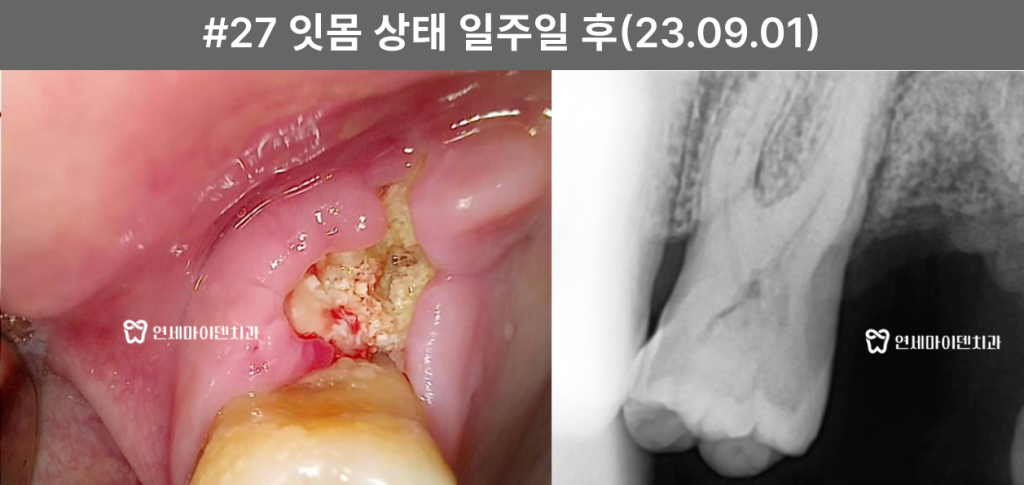 7개월 후 재내원 시 입천장 쪽 치근 주위의 치조골이