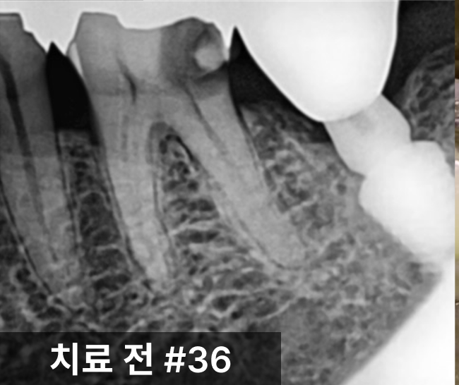 환자분의 왼쪽 아래 어금니(#36)는
