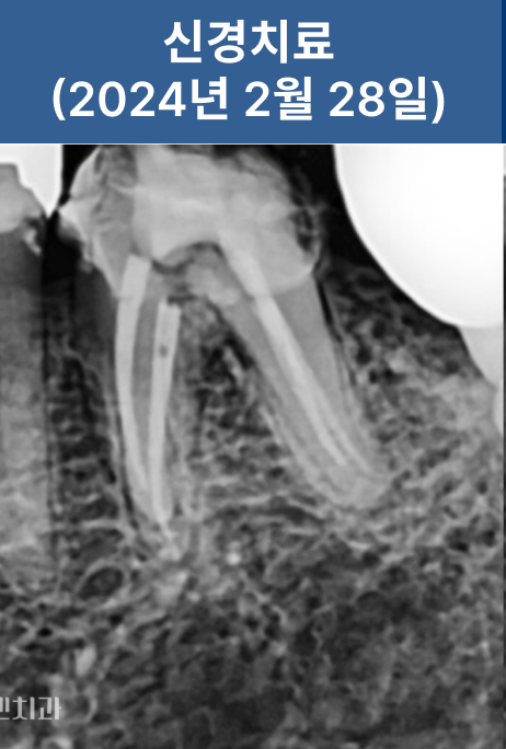 신경치료가 불가피한 상황이었습니다.