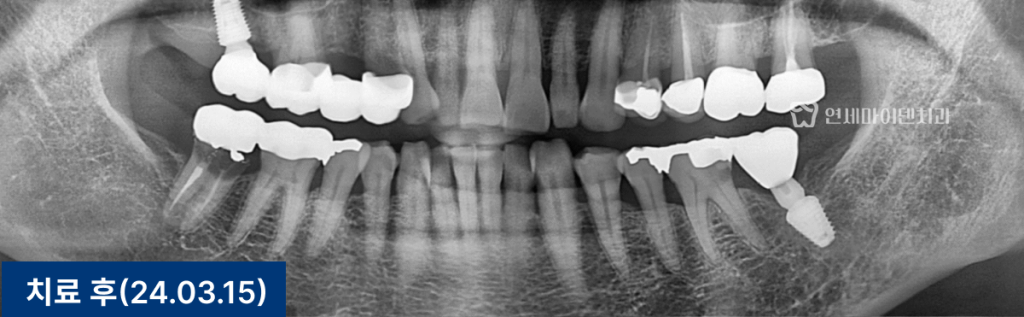 이후에는 단독형 크라운으로 교체하여 관리 효율을 높였습니다.