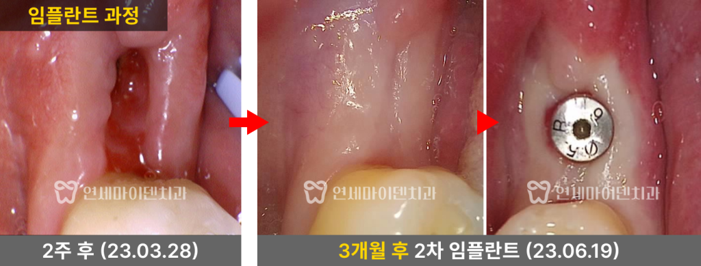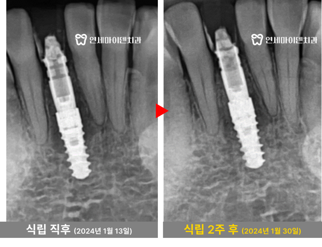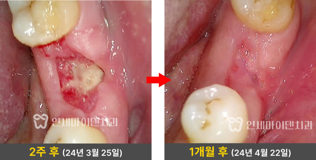 2주 후, 한달이 지나면잇몸에 새살이 차오르는 것이 육안으로도 확인됩니다.