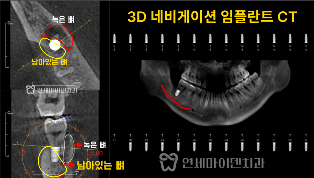 불필요한 뼈 손실 없이 최적의 결과를 얻을 수 있습니다.연세마이덴치과는 3D 네비게이션 CT를 활용한 정밀 진단과