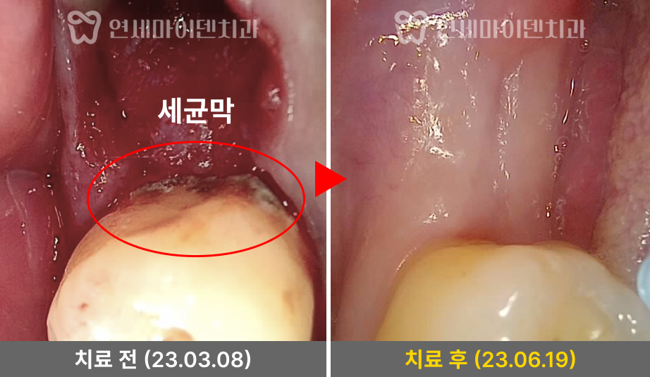 잇몸 아래의 세균막 관리를 하지 않아 결국 발치까지 가게 되었습니다.잇몸치료와 세균막 관리의 중요성