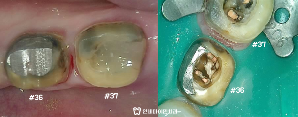 신경치료를 하기 전 어금니에 씌워져 있던 크라운을 제거하고