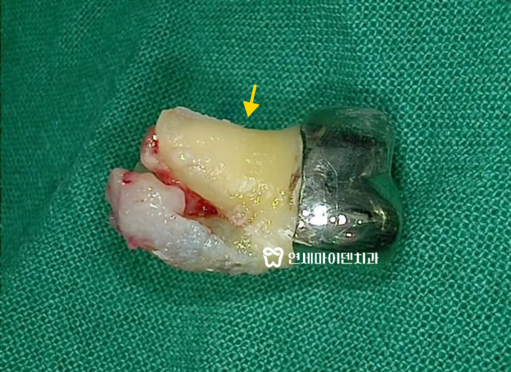 위 사진은 문제의 치아를 발치한 후 촬영한 사진입니다.
