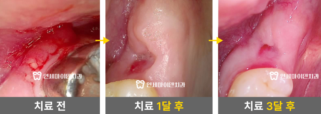 치유 과정을 거치면서 1개월, 3개월 후 잇몸 상태를 보면