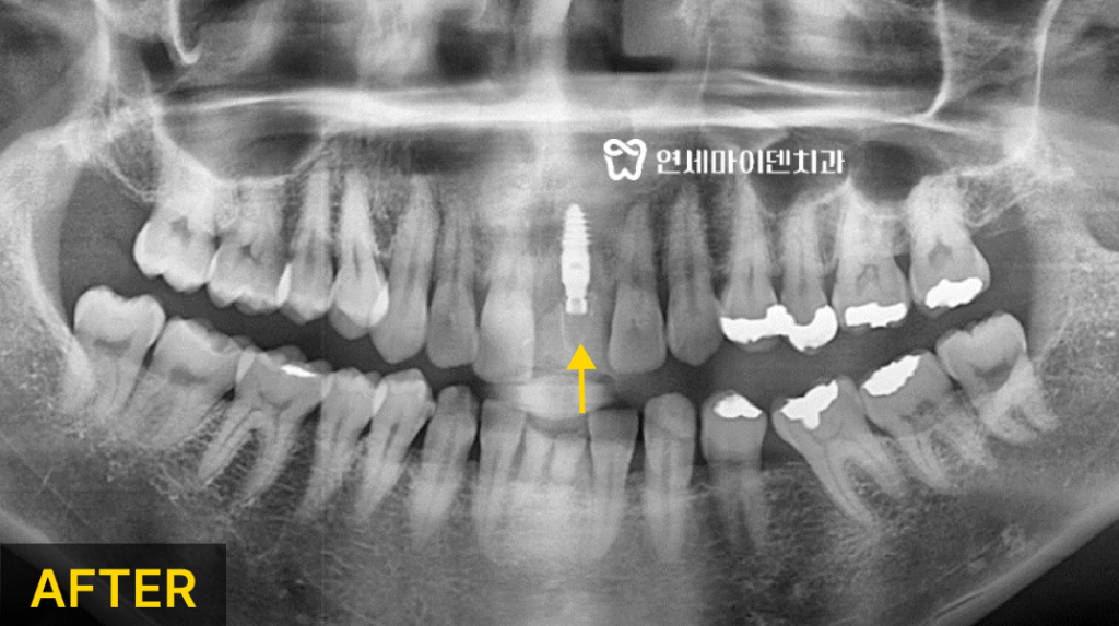 연세마이덴치과 닥터꼬집입니다.오늘은 상악 전치부 발치 즉시 임플란트 증례를 소개하려고 합니다.