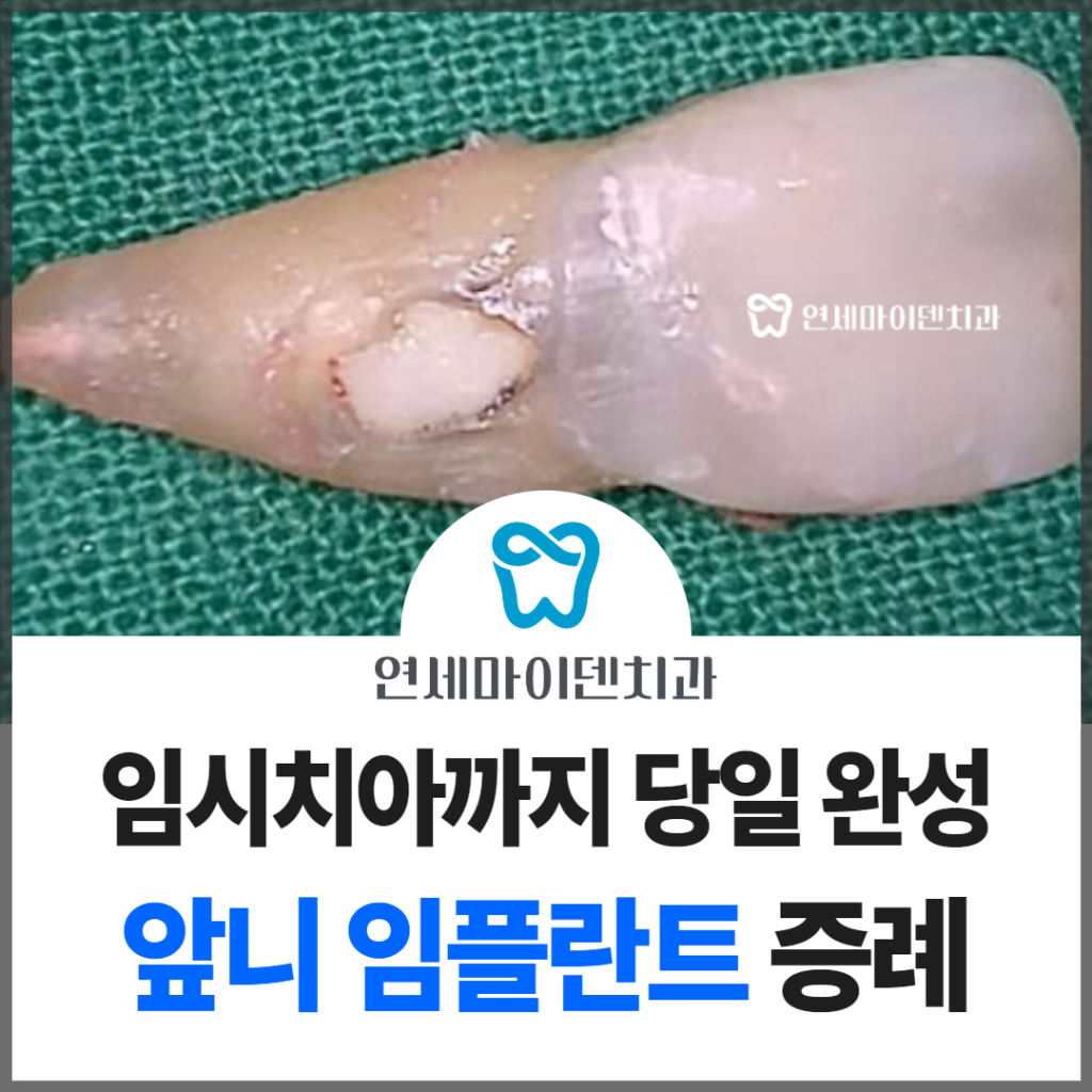 앞니 발치 즉시 임플란트, 임시치아까지 당일 완성 증례