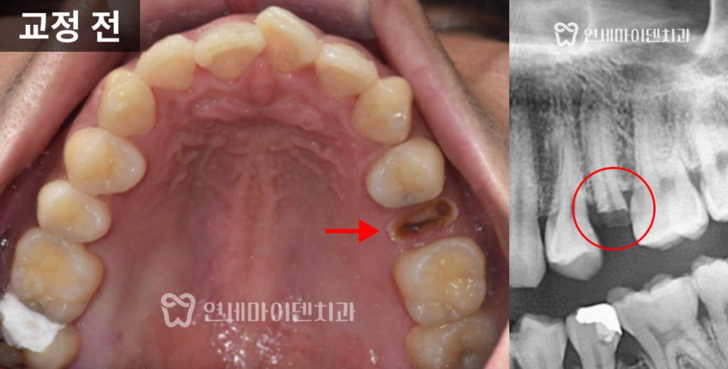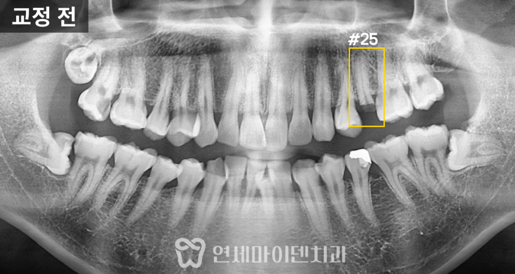 이번 사례는 교정 치료와 보존 치료를 병행하여