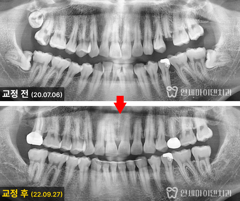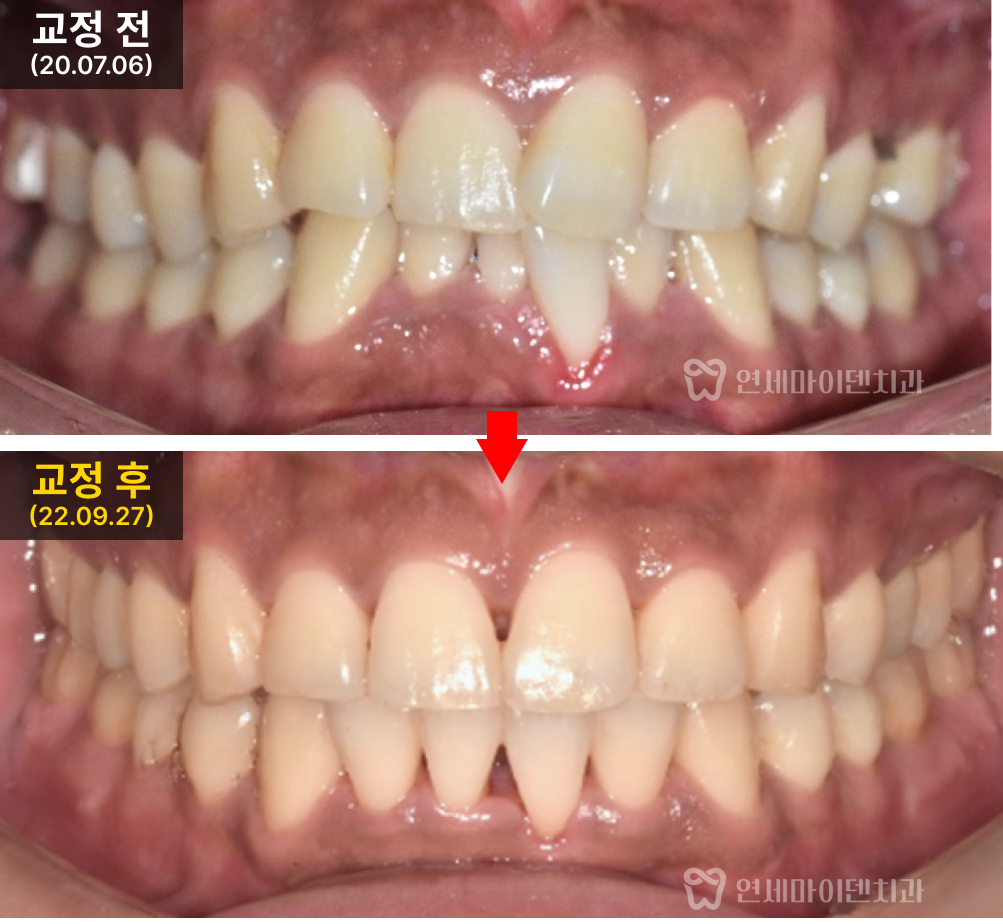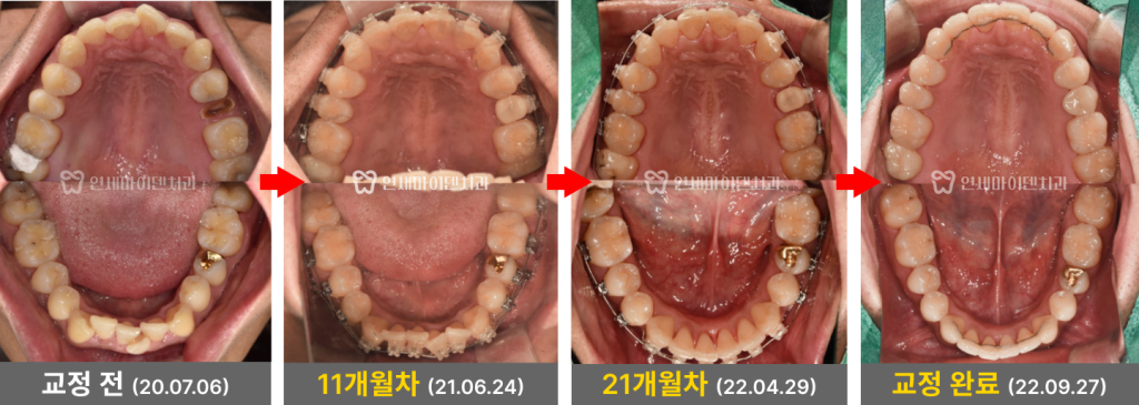 치료가 끝난 후 환자분은 발치 없이 비발치 교정으로 치아 배열을 바로잡고,