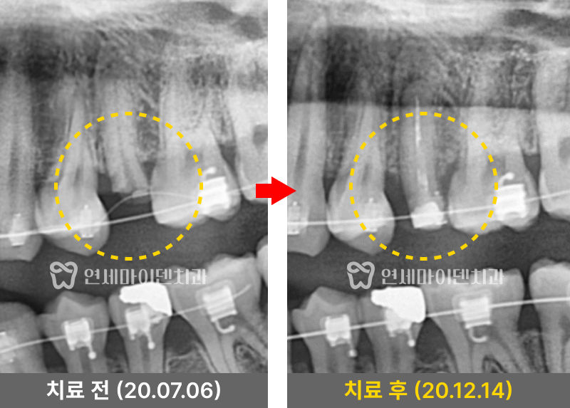 동시에 깨진 어금니를 살릴 수 있었다는 점에 매우 만족하셨습니다.