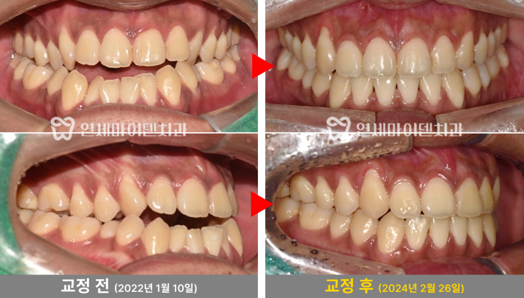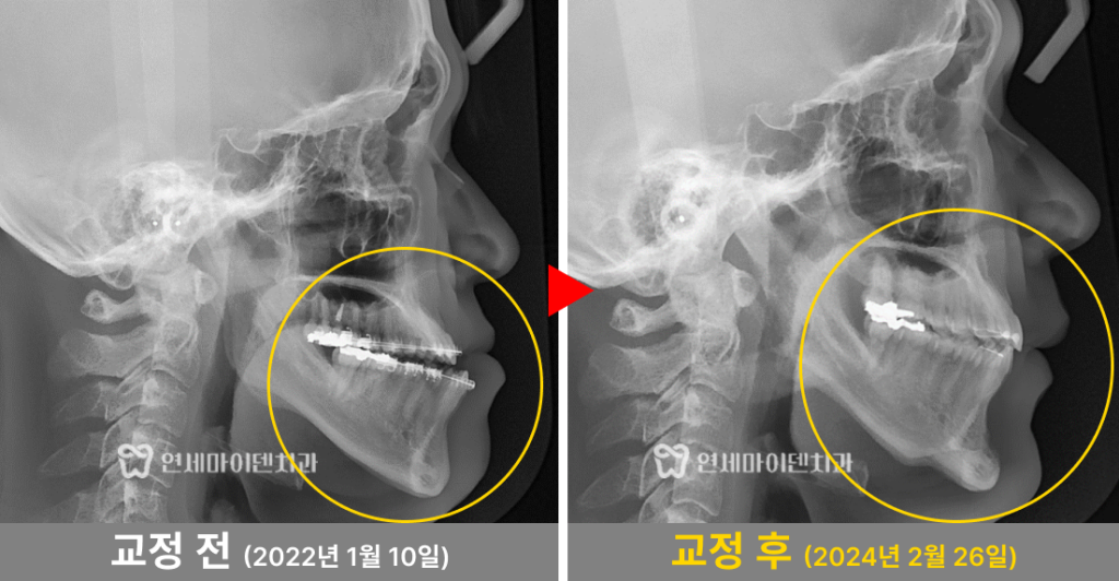 전후를 비교하면 2년만에 턱의 교합을 회복하고