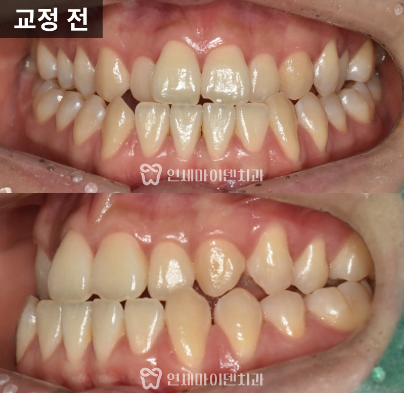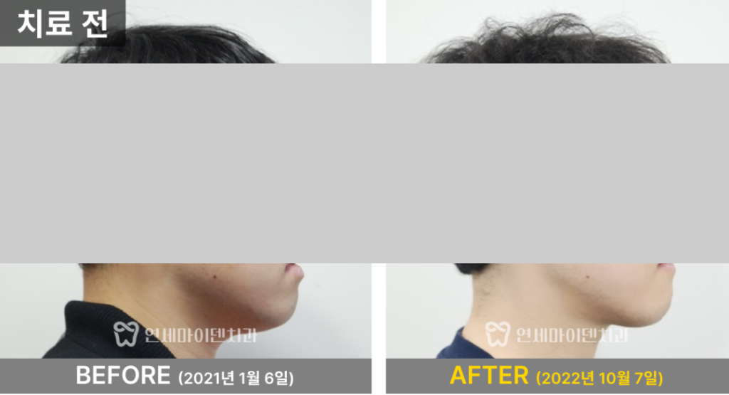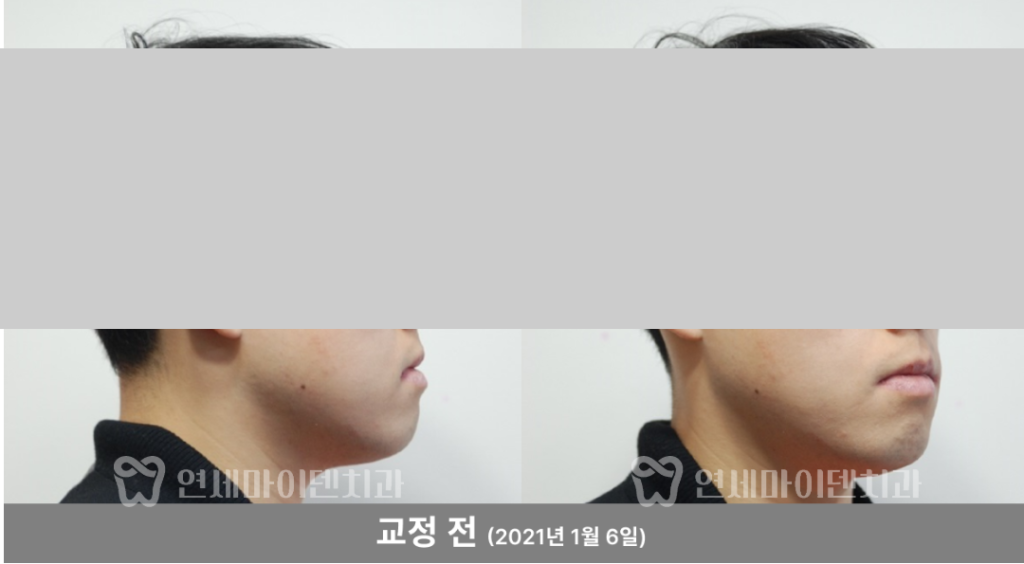 흔히 말하는 주걱턱 상태이며, 위아래 치아까지 반대로 맞물려 있었습니다.