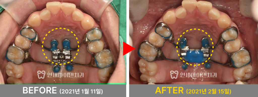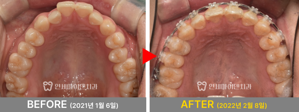 그 결과 좁고 뾰족했던 상악궁의 모양이 원만한 U자 모양으로