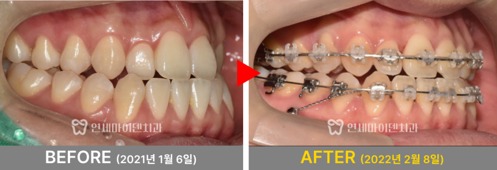 치아교정은 총 21개월에 걸쳐 진행되었고,