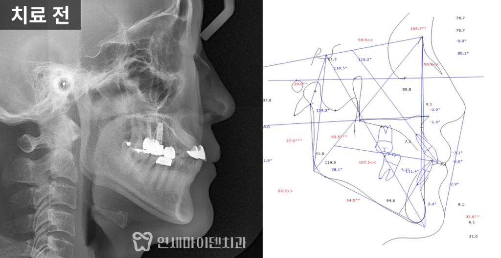 위턱 앞니는 앞으로 뻐드러진 상태였습니다.