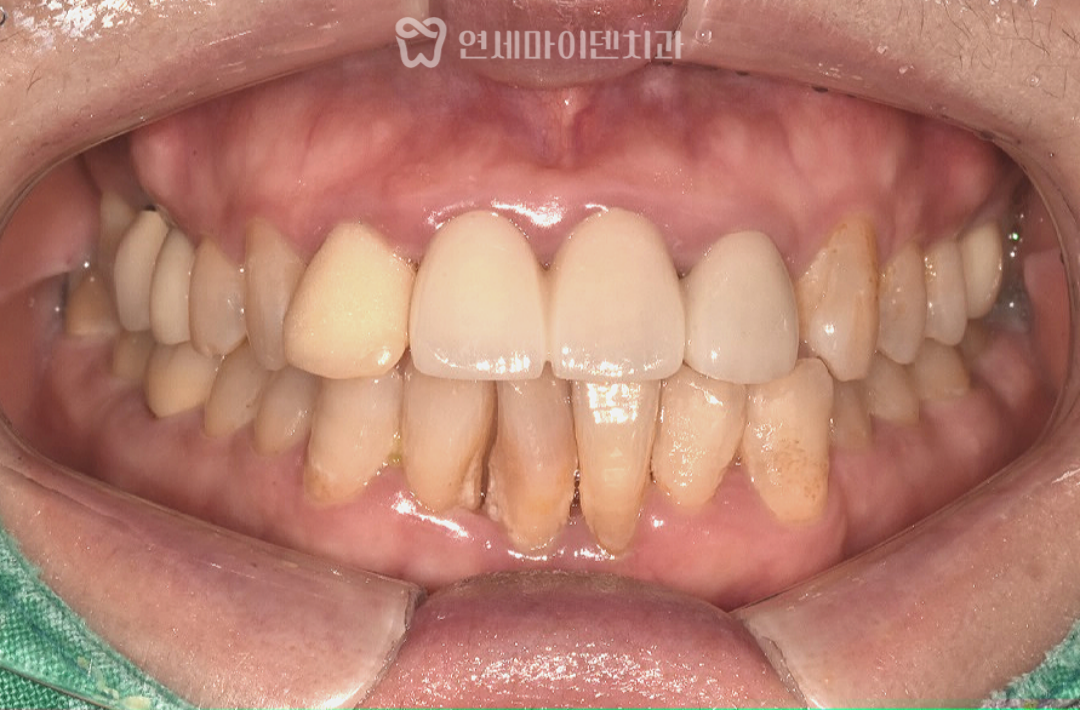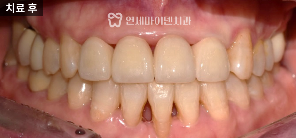 위앞니 보철의 심미성이 개선된 것을 확인할 수 있었습니다.