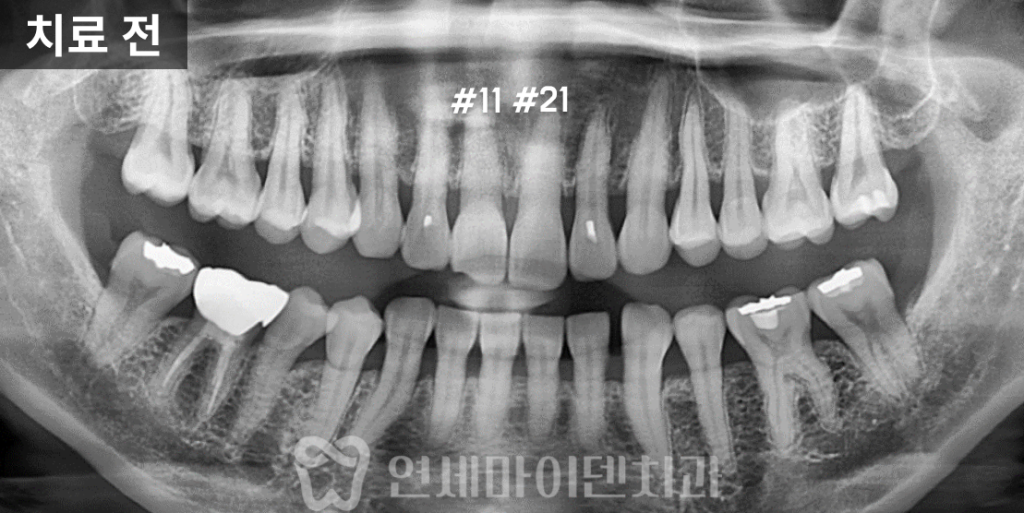 해당 앞니 두 개는 뿌옇게 흐려져 거의 보이지 않았습니다.