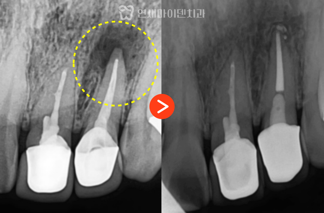치아 내부에서는 감염이 지속되고 있었던 상황입니다.