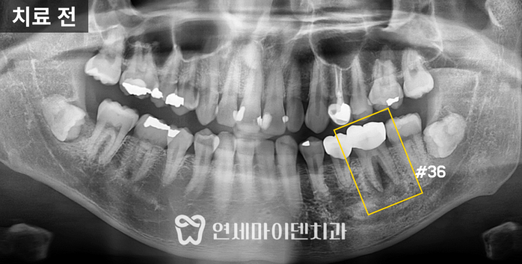 이번 사례는 치근이 분기되는 중앙 부위의 뼈까지