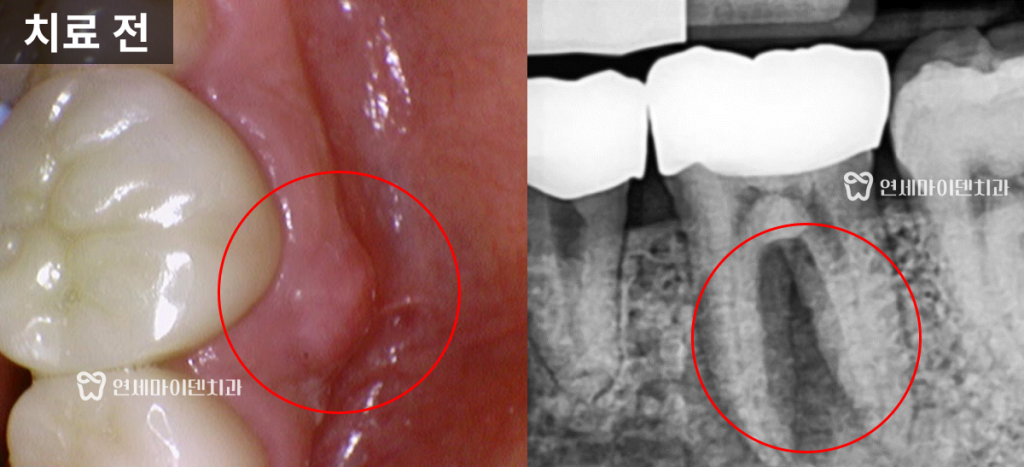 잇몸 속 고름이 주기적으로 배출되는 상황이었습니다.